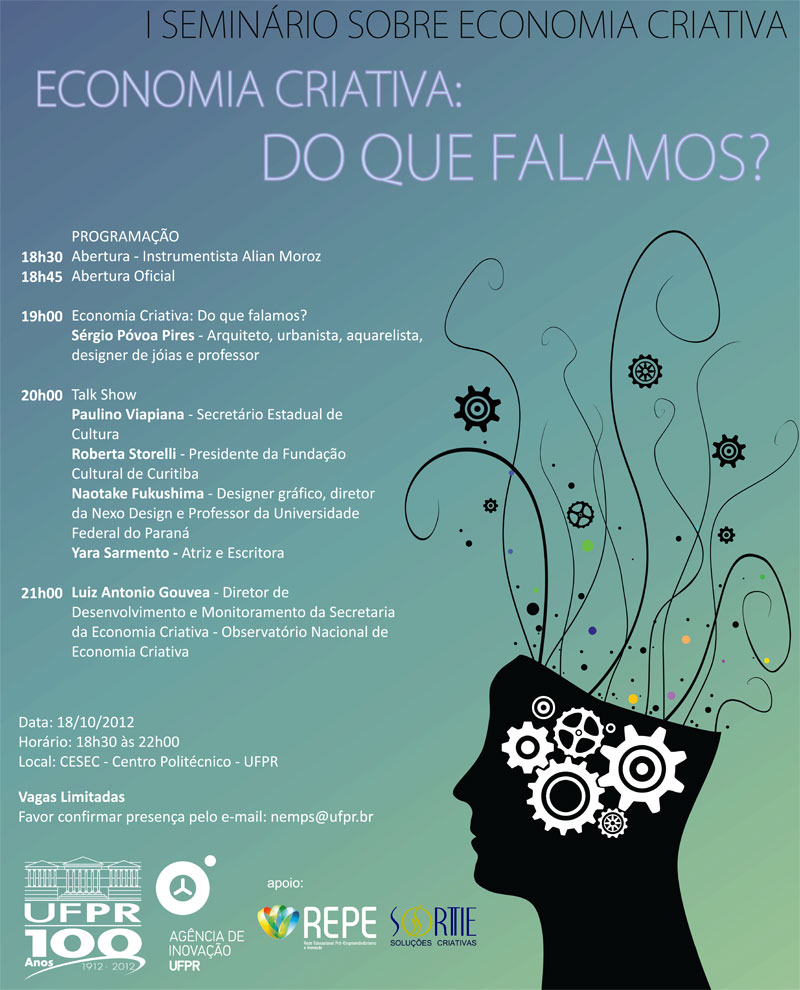 A Coordenação de Empreendedorismo e Incubação de Empresas da Agência de Inovação UFPR está promovendo o I Seminário sobre Economia Criativa, cujo tema será “Economia Criativa: do que falamos?”